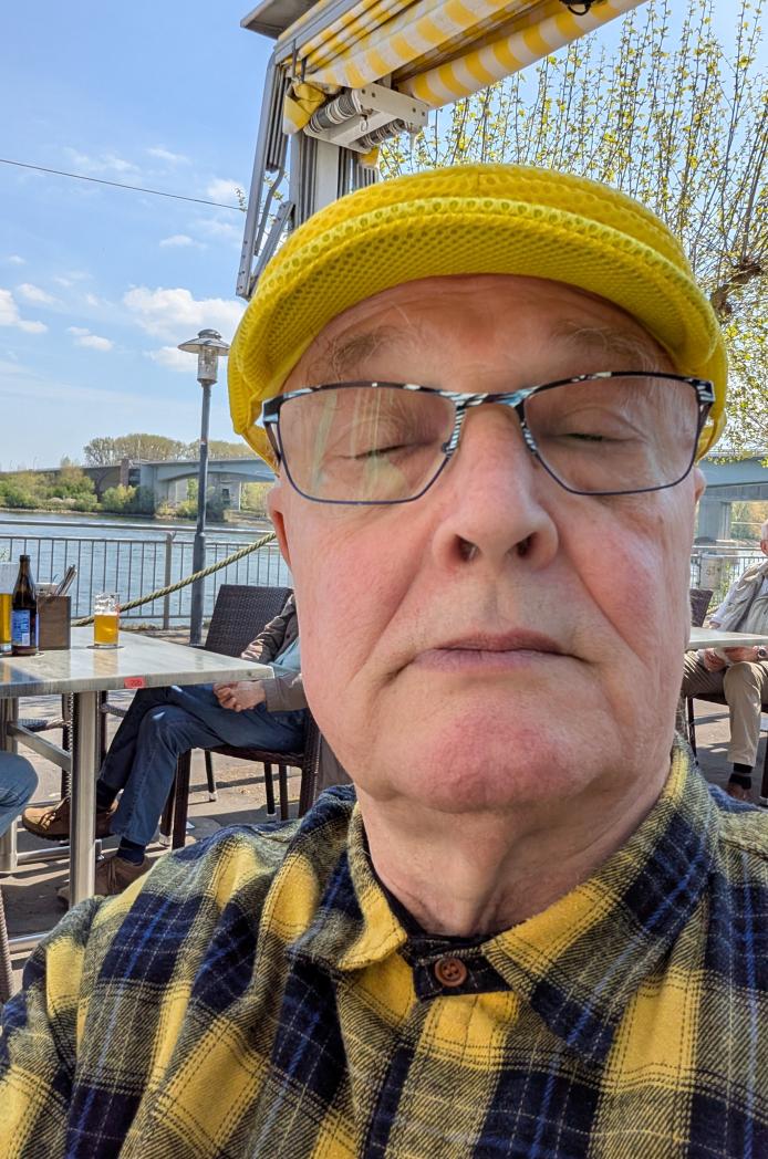 Einfach da sitzen. Vergilbt sozusagen. Am Rhein. Nein, der liebe Gott ist kein guter Mann. Kein Mann. Wenn überhaupt. Worms RK 444. Früher war das der erste Ritt mit dem Rad an den Rhein, zur Nachbarstadt der Nachbarstadt. Heute mit dem Bus. Rheinpromenade heißt die Haltestelle. Nur ein paar Schritte zum Hagenbräu. Angespargelt.