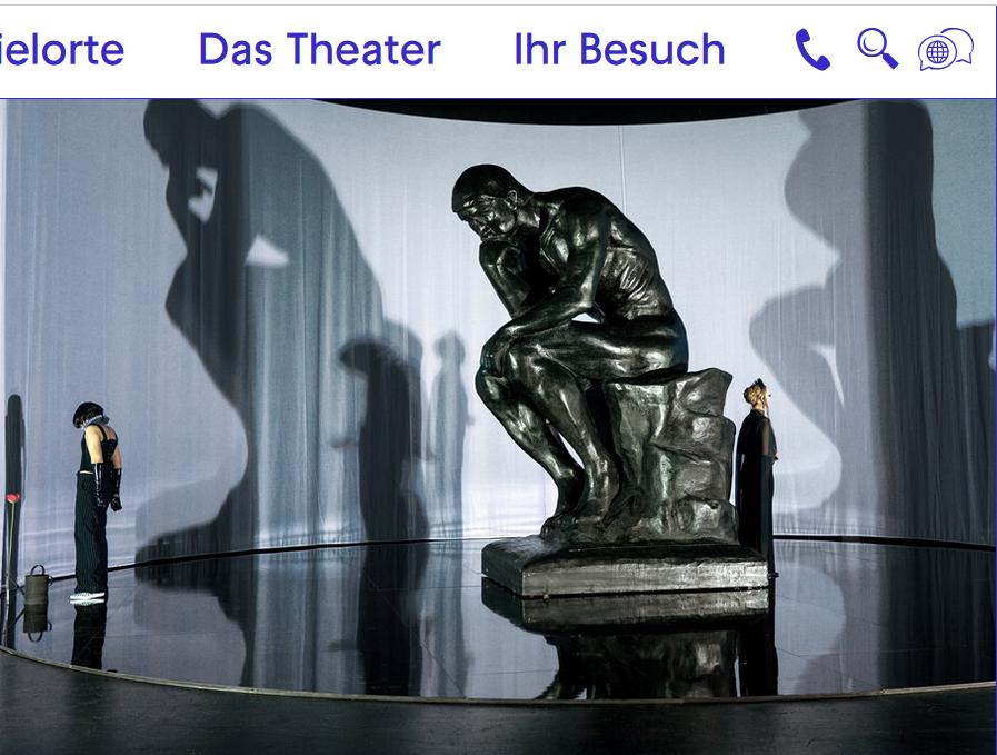 Die Kostüme fast nur Schwarz-Weiß, z.T. Gelackt, der Boden der Drehbühne glänzte im Schwarz der Politur. Weiße Masken tragend tanzte das Ensemble. Fast kam man sich vor wie in diesen Bildungs-Fernseh-Serien der 50iger oder der 60iger. Schwarz-Weiß im Kino, aber ohne Popcorn. Hamlet nutzte das Ungetüm als Klettergestell, kuschelte sich auch schonmal in seine Arme. Der Koloss konnte ganz “autonom” umherfahren, drehte manchmal die Kehrseite dem Publikum entgegen, das Ensemble spielte dann vor seinem Hinterteil. Zum Teil trugen die Schauspieler Gesichtsmasken, auch gerne am Hinterkopf, als ob es Griechen wären, dem Zeus opfernd. Alles und Alle waren immer in Bewegung, rund um den grauen Vorhang längs der Drehbühne. Spätestens da hatte mich das Stück gepackt. Schattenspiele auf dem Vorhang, durch den auch Polonius gemordet wurde. Kein Blut, nirgends, kein Degen-Gefummel. Güldenstern mit Boot als Schatten gen Engeland segelnd. Vorhang-Projektionen, als ob Kentridge sein Refusial of Time eingebracht hätte. (Ich muss mal wieder in die Kunsthalle, den Museumspass Gassi führen). Der Krieg aus Norwegen im Stück fast ausgeblendet, aber mein Hirn blendete die Kronprinzessin samt Epstein ein. Diese seltsamen Prinzen, Könige und Co gibt es ausch 2026 noch. Immer wieder denke ich: Was hätte Shakespeare für Themen, auch und gerade in England.